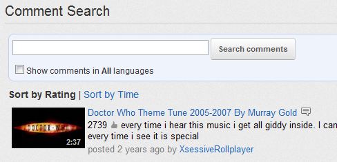 With Comment Search you can discover videos by searching video comments. This is a nice way to find your old comments and see how they are rated.