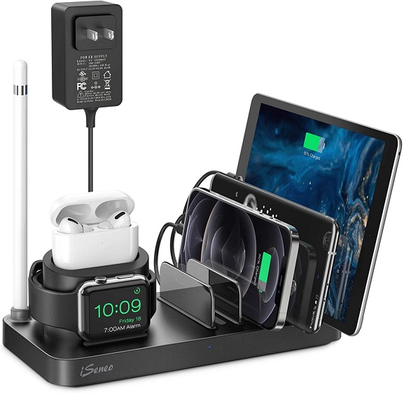 There are multiple reasons why iSeneo deserves serious consideration. First and foremost, the charging station features an appreciable 7-in-1 design to let you keep all of your devices neatly organized. It has 6 power transmission ports and 1 Apple Pencil dock which you can use to keep your stylus securely. Do note that the Pencil dock is only for storage.