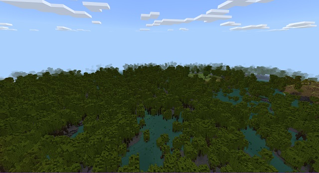 Lastly, we are here with a seed that gives us a glimpse of what the Minecraft 1.20 update can bring to the table. It spawns a village in the middle of the mangrove swamp biome. But instead of being a swamp village, it is a desert village with a swamp and desert villagers in it. Hopefully, if we check this village in the next update, we might find the missing swamp village instead.