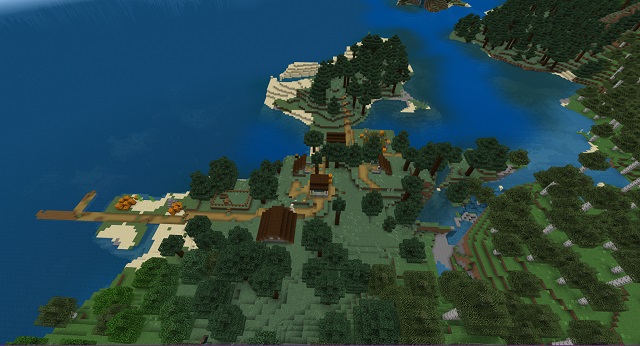 The most popular seeds in Minecraft usually are the ones that spawn you inside a village. But what’s better than those seeds are the ones whose spawn village is in a rare ravishing spot. That’s what this seed provides. It spawns you inside a tiny taiga village that sits next to an ocean and is surrounded by a massive birch forest.