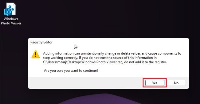 4. Now, move to the location where you have saved the .reg file. Then, double-click on the file to run the registry command and click on “Yes“. This will merge the entries with your Registry.
