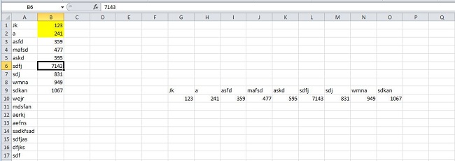 A new transposed table is thus created, but it is a live copy of the original one, i.e. if you make any changes to the original one, there will be changes to this table as well. As you can see in the images below, when the data in B6 is changed, data in L10 automatically changes. A small tradeoff is that you cannot copy the format that the data in original table had, and it is quite evident from the fact that 2 yellow cells didn’t carry their yellow color to the live transposed copies.