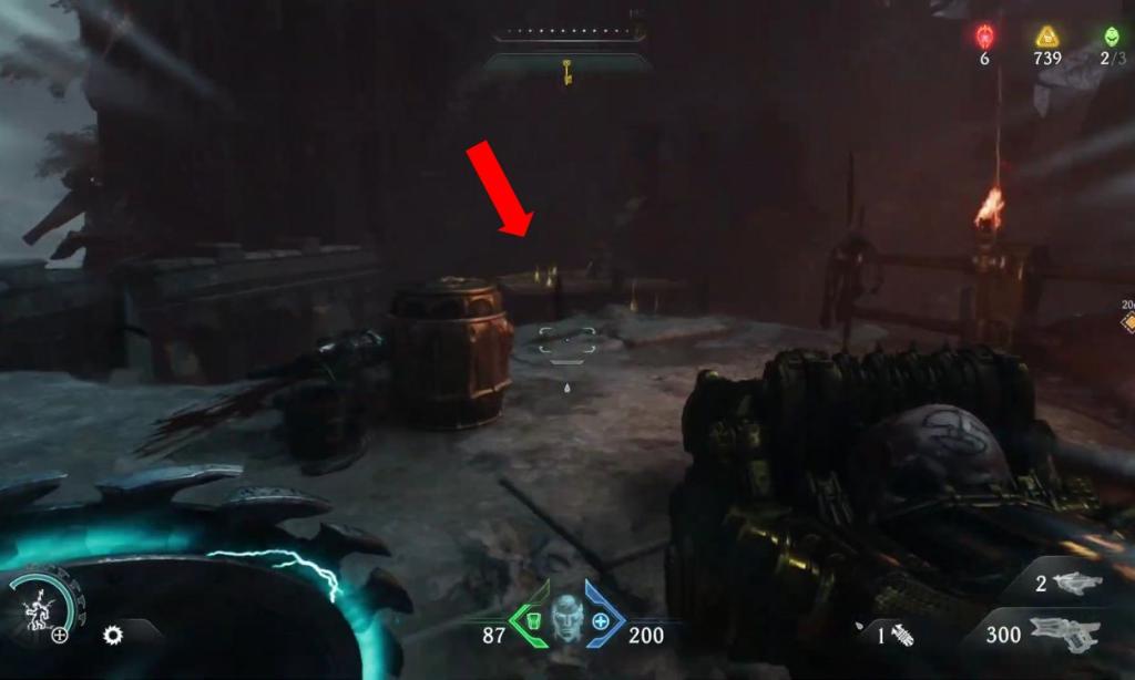 While following the main objective, you’ll come across an open area with a central pillar wrangled by a gore-tentacle. Once you’re here, turn left, pace forward, and jump onto the lower level. Now, jump across the gap and follow the trail of gold pick-ups to the secret area.