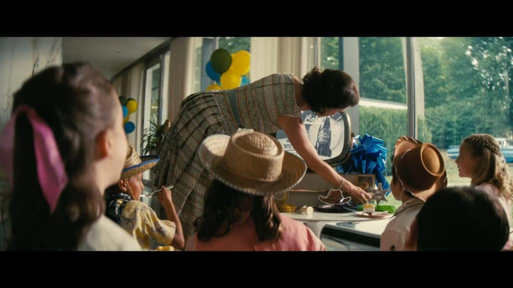 It isn’t Fallout without Nuka Cola. The show understands this well, as we are introduced to a Nuka Cola ad right at the beginning of the series. You can find the advertisement if you look closely at the TV at the birthday party. Hell, we even see the Sugar Bombs cereal reference!