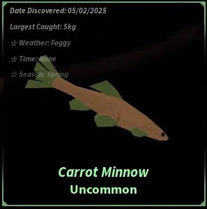 ![]() | Carrot Minnow | Any | Foggy | Any | Spring |