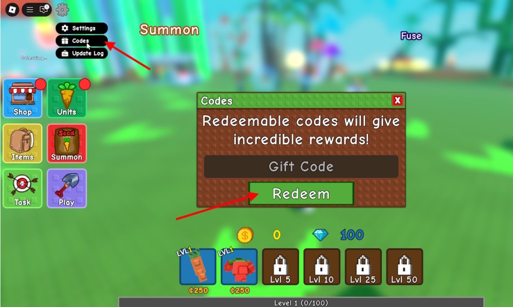 Redeeming codes for Garden Tower Defense is fairly easy, and here is how you can do it: