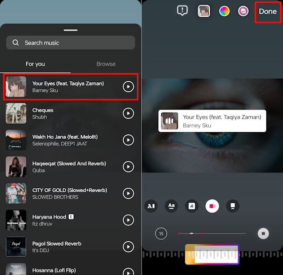 7. After you find the desired music track, tap on it to add it to your Instagram story.