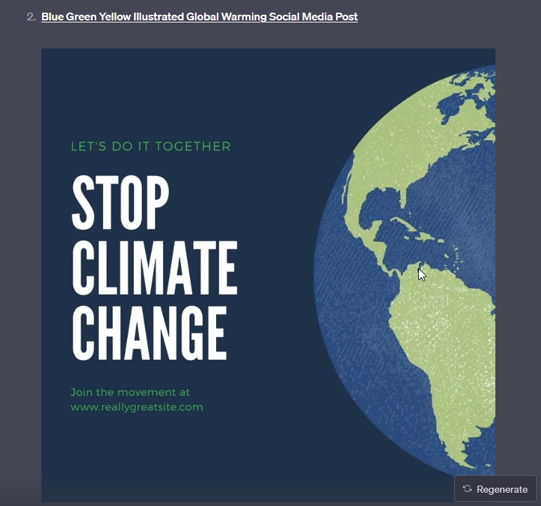 6. Now, go ahead and enter the prompt for the image or video you wish to create. For starters, we asked ChatGPT to generate images for social media posts about climate change, and it generated some impressive results within a minute.