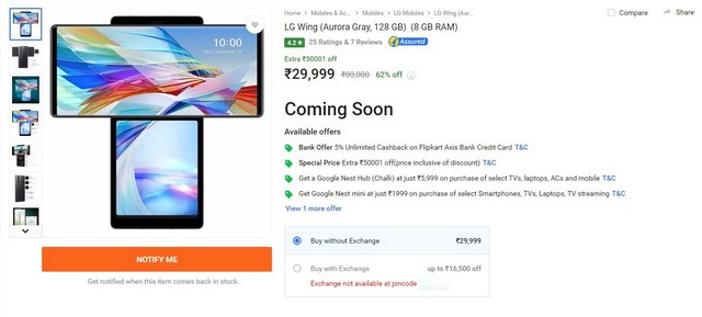 Moreover, you can exchange your existing smartphone and get an additional discount of up to Rs 16,500 (depending on the value of your current device). So, this can potentially bring down the price of the LG Wing 5G to Rs 13,499. Now, this is madness! However, do keep in mind that the exchange offer is only available for select regions.