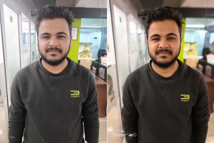 The following sample again showcases the superior blur effect created by the Honor View 10’s camera as well as its excellent color reproduction. On the other hand, the portrait shots clicked with the OnePlus 5T exhibit insufficient depth of field and slightly inaccurate colors with a washed out appearance.