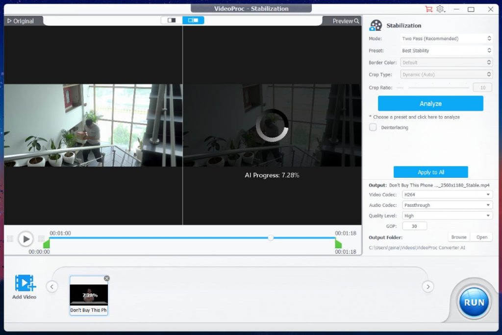 Manipulating and converting videos is just one aspect of VideoProc. It can also enhance, fix, and improve the quality of your videos with its AI features. They are Super Resolution, Frame Interpolation, and Stabilization. I briefly touched upon them above, but let me explain them in detail and show how they can improve the quality of your videos.